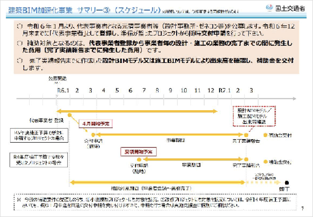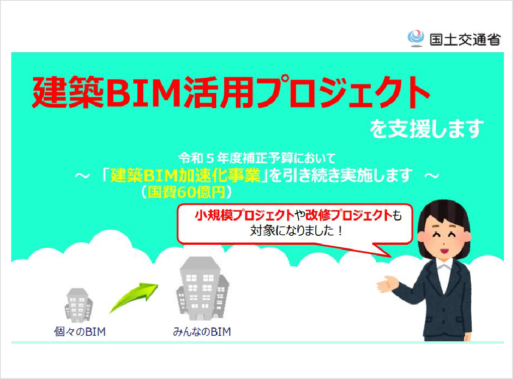 2023(R4-5)年度から「BIM加速化事業」として始まった、国交省によるBIM加速等を支援する補助金事業です。